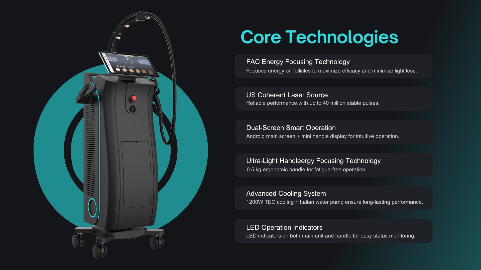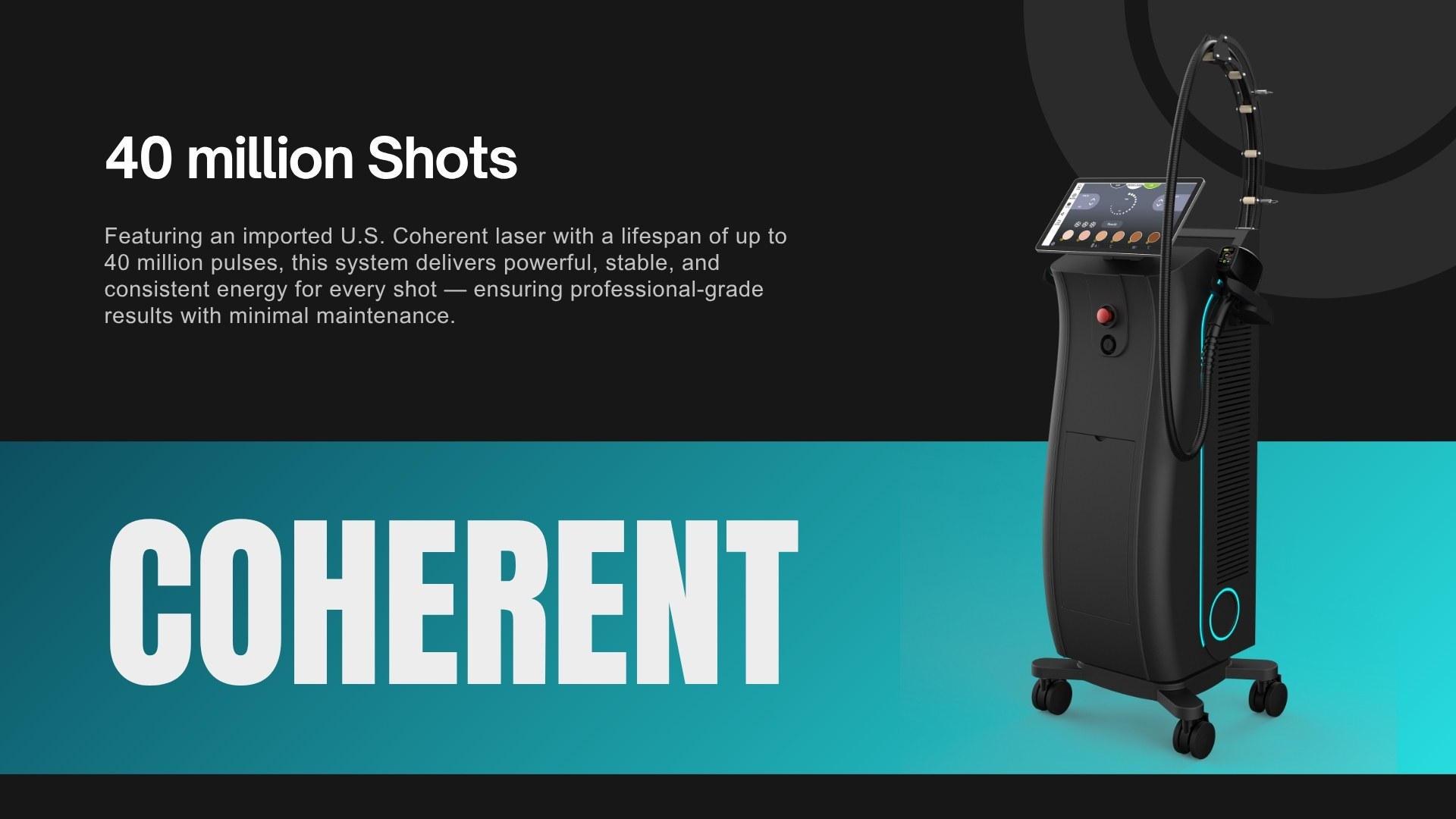 Featuring an imported U.S. Coherent laser with a lifespan of up to 40 million pulses, this system delivers powerful, stable, and consistent energy for every shot —— ensuring professional-grade results with minimal maintenance.